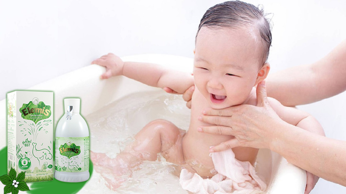 Mẹ chuẩn bị hai thau nước ấm, sau đó lắc đều Elemis và nhỏ giọt vào. Thau đầu tiên dùng để tắm gội lần một. Thau thứ hai dùng để tráng lại cho những bụi bẩn từ cơ thể bé được làm sạch sâu một lần nữa.