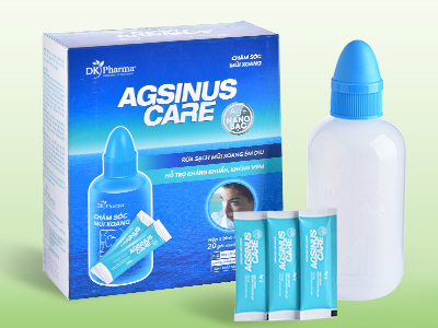 Bộ Agsinus Care bao gồm bình rửa và dung dịch muối Nano Bạc giúp vệ sinh khoang mũi, phòng chống viêm mũi, nghẹt mũi, ngứa mũi,...