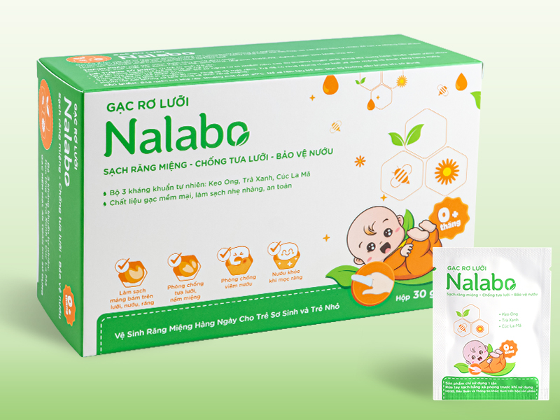 Gạc rơ lưỡi Nalabo với công thức độc đáo kết hợp bộ 3: Keo Ong, Trà Xanh, Cúc La Mã giúp loại bỏ hiệu quả các mảng bám trên lưỡi, nướu và răng của trẻ; diệt các vi khuẩn có hại. Đặc biệt, thành phần Keo Ong giúp diệt vi khuẩn streptococcus mutan gây viêm nướu, loét miệng. Ngoài ra, còn có NaHCO3 giúp diệt nấm Candida albicans là nguyên nhân gây ra bệnh nấm miệng.