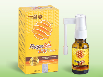- PropoBee Baby Spray chứa Keo Ong Propolis - Papain dạng phức hệ liên kết chống viêm mạnh gấp 2 lần so với thành phần đơn trị, giúp giảm ngứa họng, dịu nhanh cơn ho và tránh tái nhiễm.