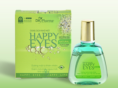 - HAPPY EYES NATURAL là sản phẩm nhỏ mắt có chứa Natri clorid, vitamin E, Borneol, Chiết xuất mật mông hoa dùng rửa mắt để loại các vật lạ như bụi bẩn vào mắt, loại các tế bào chết của tuyến nước mắt, làm sạch ghèn (rỉ) mắt.